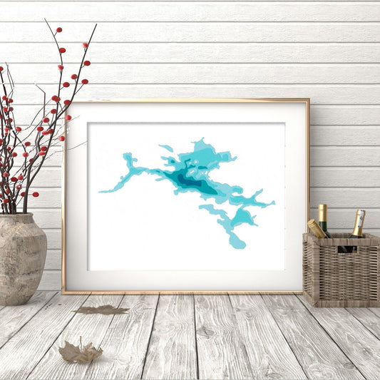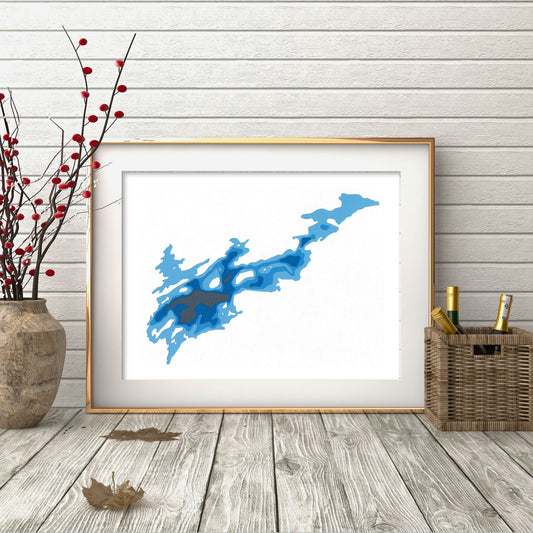 Koshlong Lake 9"x12" Papercut Cardtography Map | Wall Art | Poster | Print | Map Art | Wall Decor