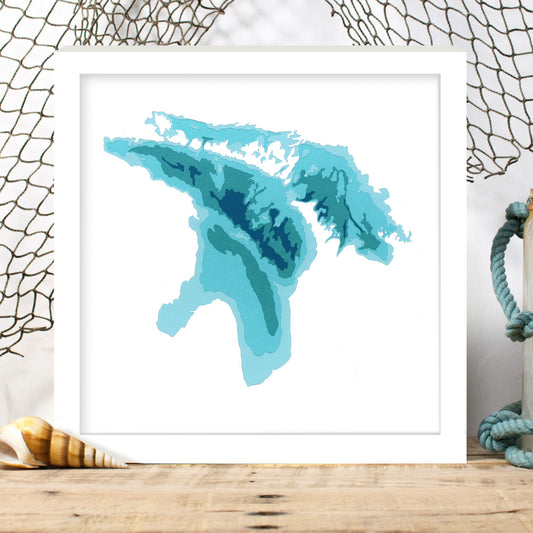 Lake Huron 12"x12" Papercut Cardtography Map | Wall Art | Poster | Print | Map Art | Wall Decor