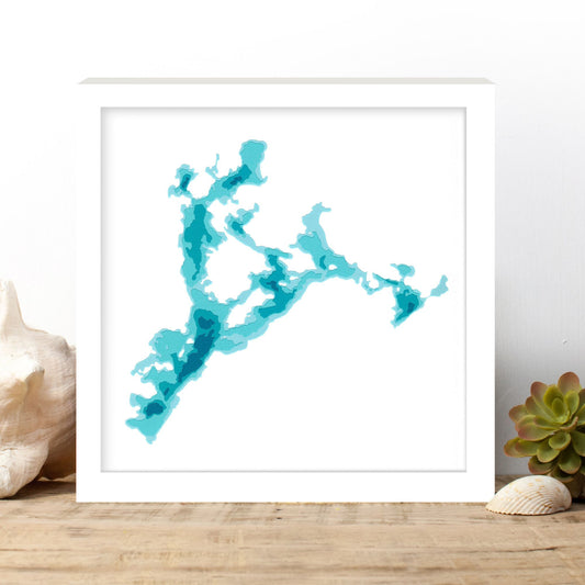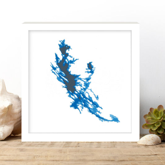Lake Joseph 12"x12" Papercut Cardtography Map | Wall Art | Poster | Print | Map Art | Wall Decor