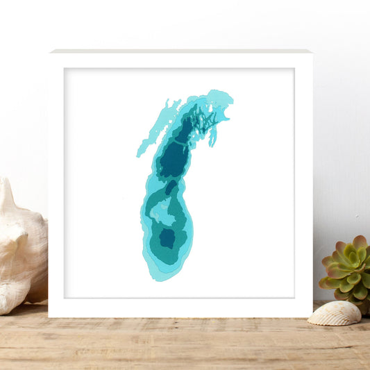 Lake Michigan 12"x12" Papercut Cardtography Map | Wall Art | Poster | Print | Map Art | Wall Decor