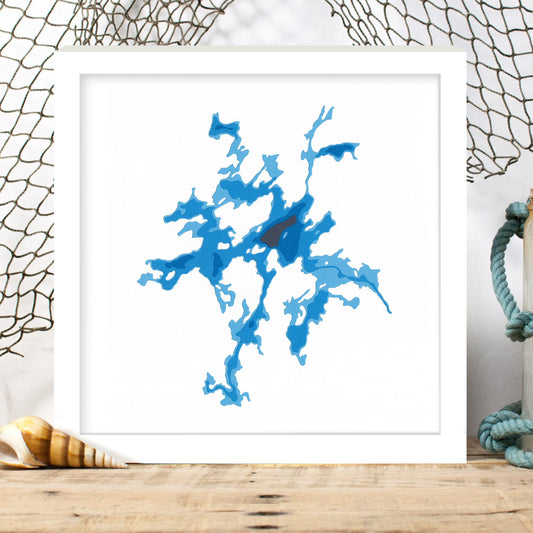 Long Lake (Muskoka) 12"x12" Papercut Cardtography Map | Wall Art | Poster | Print | Map Art | Wall Decor