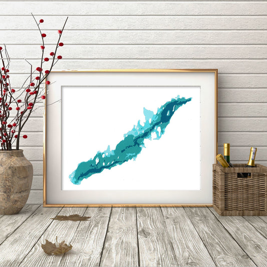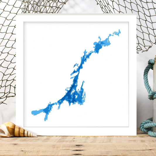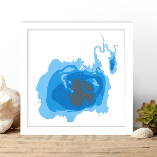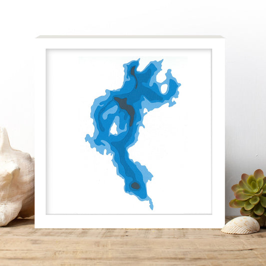 Rideau Lake 12"x12" Papercut Cardtography Map | Wall Art | Poster | Print | Map Art | Wall Decor
