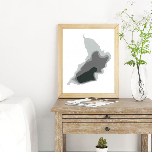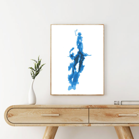 Blue Chalk Lake 8"x10" Papercut Cardtography Map | Wall Art | Poster | Print | Map Art | Wall Decor