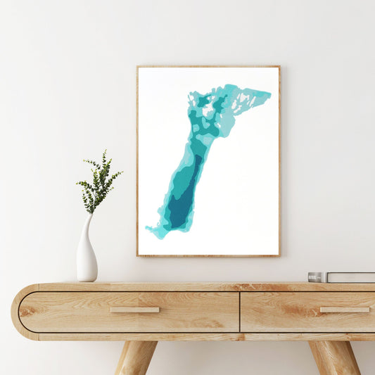 Contau Lake 9"x12" Papercut Cardtography Map | Wall Art | Poster | Print | Map Art | Wall Decor