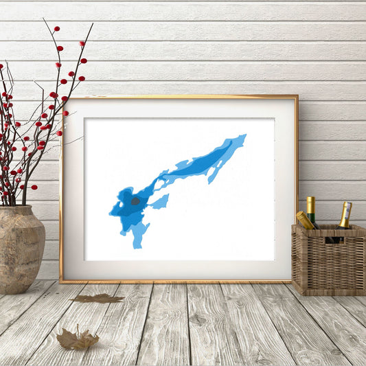 Chemong Lake 9"x12" Papercut Cardtography Map | Wall Art | Poster | Print | Map Art | Wall Decor