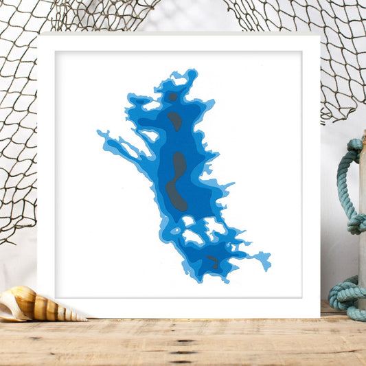 Chandos Lake 12"x12" Papercut Cardtography Map | Wall Art | Poster | Print | Map Art | Wall Decor