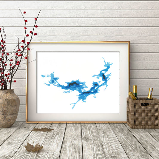 Drag Lake 12"x12" Papercut Cardtography Map | Wall Art | Poster | Print | Map Art | Wall Decor
