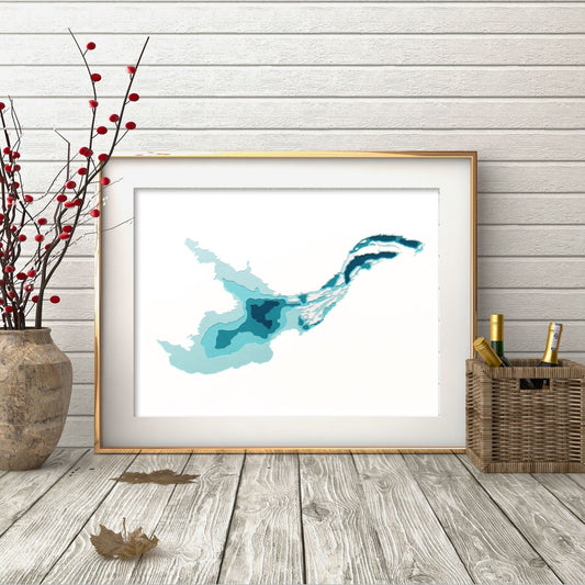 Gin Lake 8x10" Papercut Cardtography Map | Wall Art | Poster | Print | Map Art | Wall Decor