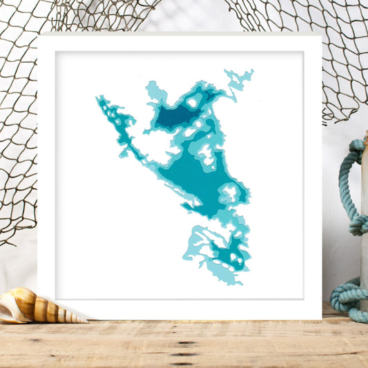 Gull Lake (Muskoka) 12"x12" Papercut Cardtography Map | Wall Art | Poster | Print | Map Art | Wall Decor