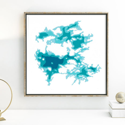 Horseshoe Lake (Muskoka) 12"x12" Papercut Cardtography Map | Wall Art | Poster | Print | Map Art | Wall Decor
