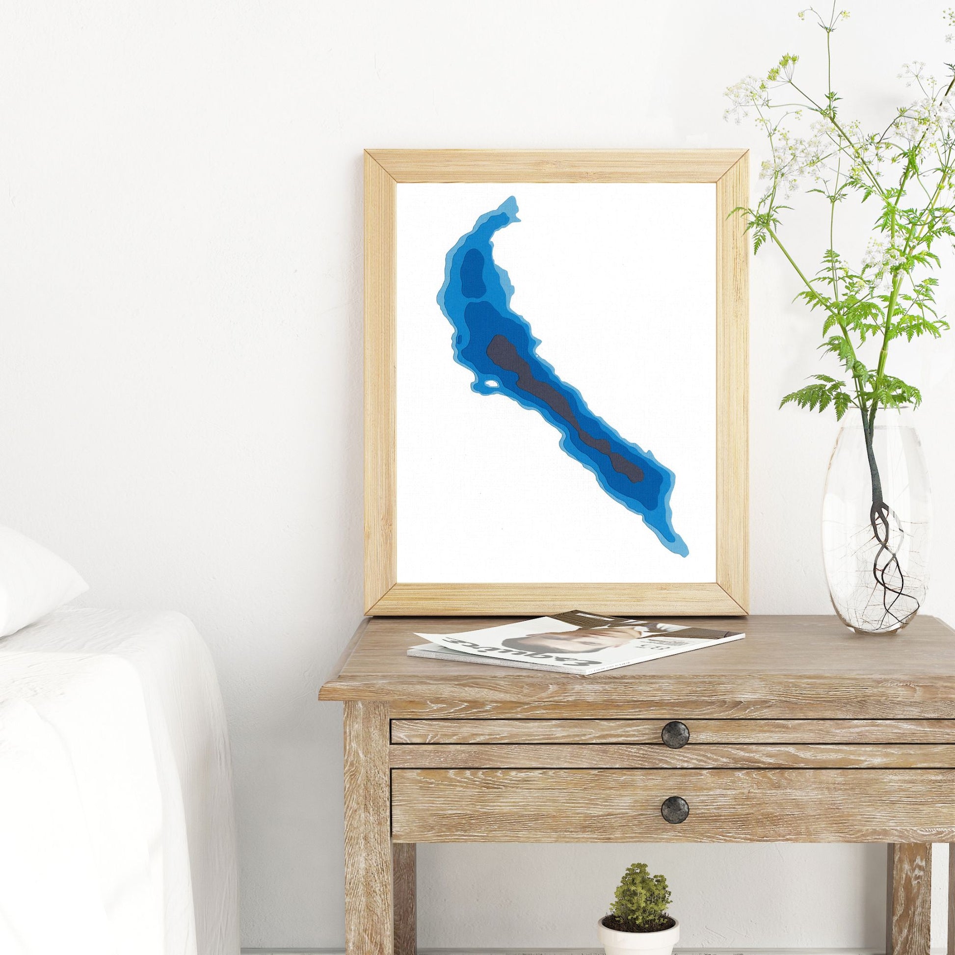 Whether it's a reminder of lazy beach days, fishing adventures, or that special childhood family vacation, this map brings the lake to you - wherever you might be! Indulge in a little lakeside magic for yourself or surprise friends and family with a truly special piece of art.